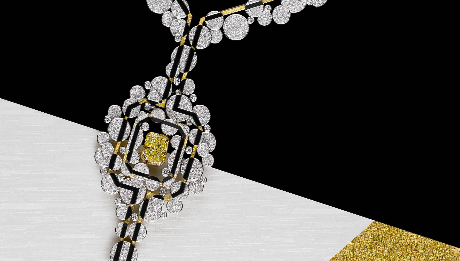 I had an instant crush for this majestic necklace and its graphic shape. The picture taken, as a result, had to respect the CHANEL colours – black and white – with a hint of gold to bring out the diamonds’ hue but also to recall the fabric effects proper to the Art Deco movement that developed until the Modernist period.
